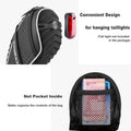 A reflective strap around the bicycle saddle bag improves visibility during night rides. Includes a taillight hook for added safety (taillight not included). -