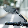 The anti-glare bike mirror minimizes headlight reflection and provides a clear, high-definition view for safer rides. -