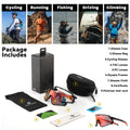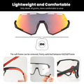 The ROCKBROS Dual Lens Cycling Glasses combine photochromic and polarized lenses to adapt effortlessly to changing light conditions while reducing glare and eye strain. The photochromic cycling sunglasses automatically adjust brightness for clear vision from dawn to dusk, and the polarized cycling glasses enhance contrast for safer, more comfortable rides under strong sunlight. Designed with an interchangeable lens system and a removable lower frame, these interchangeable bike sunglasses offer versatile protection and a lightweight fit, perfect for cycling, running, and various outdoor sports.