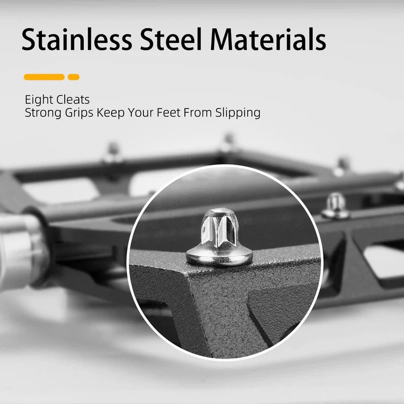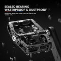 Made from a CNC-integrated aluminum alloy body, these pedals are built to handle impact, mud, and wet conditions. Sealed bearings protect against water, dust, and debris, so you can ride confidently in rain, dirt trails, or city puddles without worrying about damage or extra maintenance. -