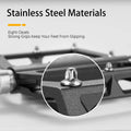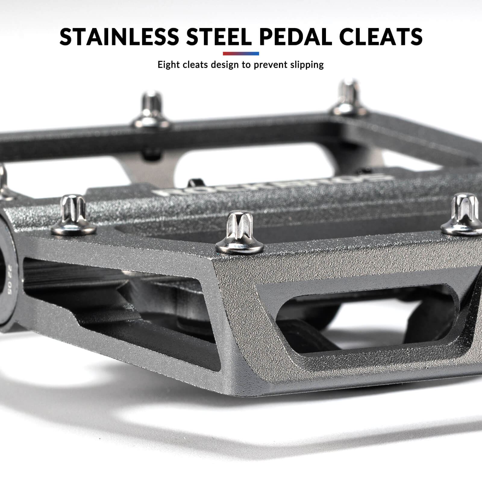The 101 × 92 mm platform ensures stability even when your shoes are wet or muddy. Stainless steel anti-skid pins give extra traction when you need it most, while L/R markings make installation quick and error-free. Stay in control on climbs, descents, or busy urban streets. -