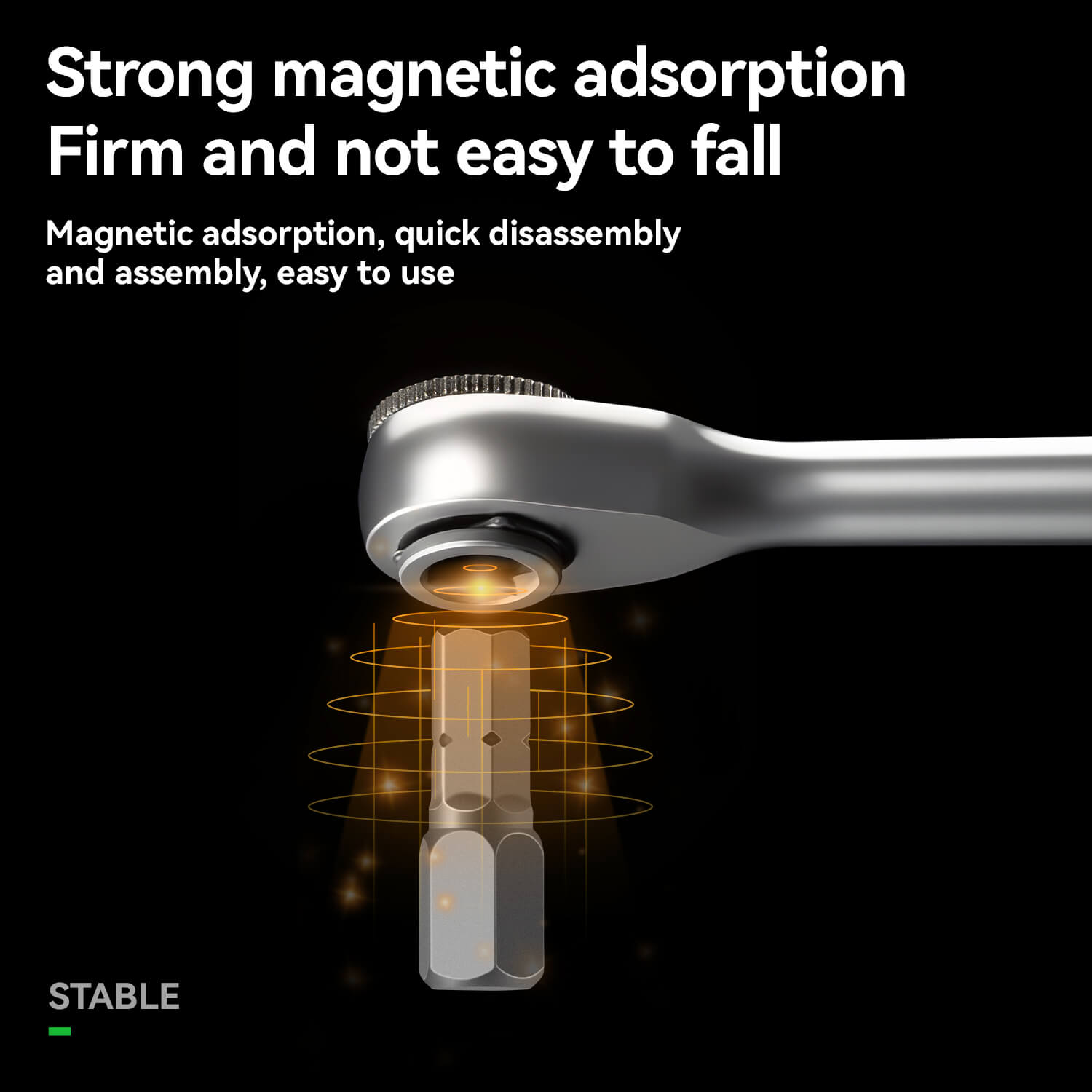 Built-in magnetic absorption ensures each bit locks securely in place, reducing drops and making assembly smoother—especially in tight spaces. -