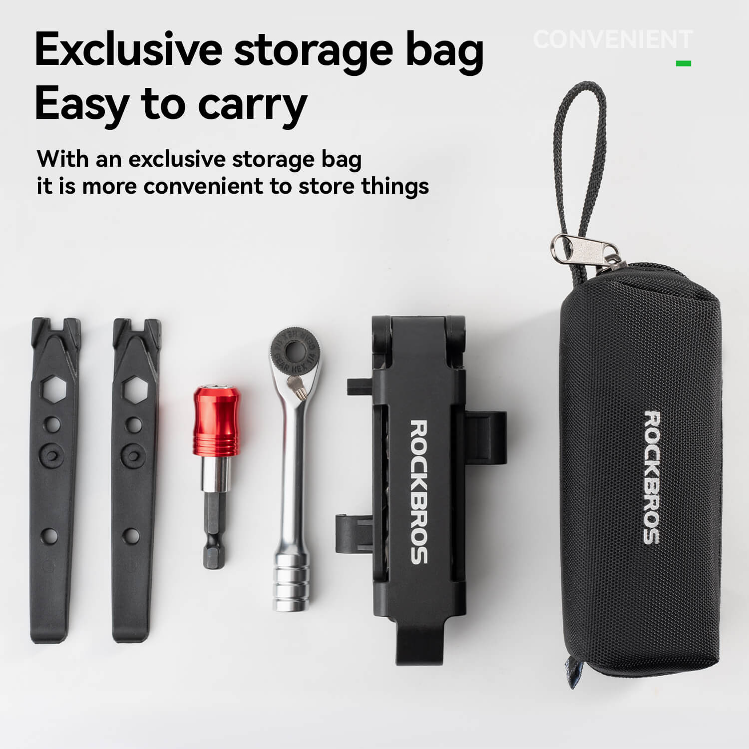 A dedicated storage pouch keeps all components organized and easy to carry for on-the-go repairs. -