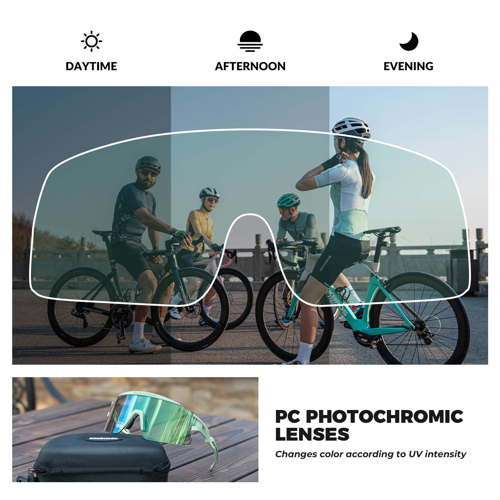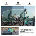 Hit the road or trails with confidence. The photochromic lenses automatically adapt to changing light conditions, reducing glare and enhancing contrast, so your vision stays sharp on sunny streets, shaded mountain paths, or busy urban commutes. -