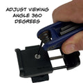 Clamp can be rotated 360 degrees for Portrait or Landscape viewing. Mounts with heavy duty EPDM strap that is easy on and off but secure. Fits dia. up to 2 1/4".