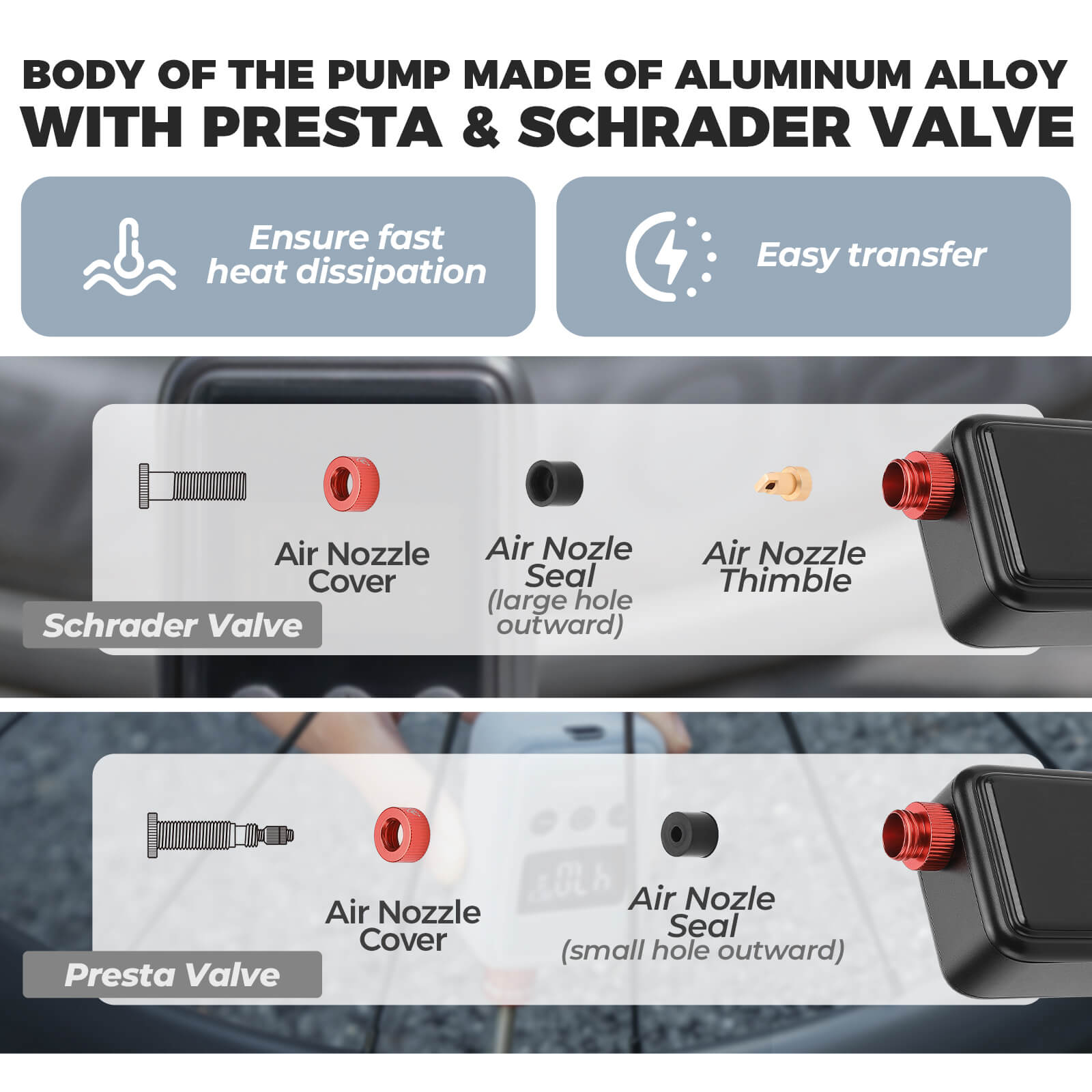 The elastic mini hose is durable and easier to maneuver, allowing a smooth connection to both valve types without strain or bending.