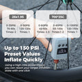 A built-in LED screen shows real-time pressure and battery levels, making it easy to monitor PSI and adjust to your preferred preset. -