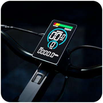 Backlit, heads-up color LCD display with a USB-A port provides trip and battery information. IP-65 rated components ensure water and dust resistance.