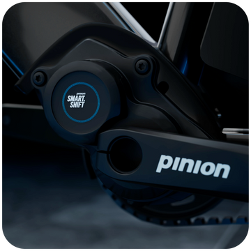 Pinion C1.6i six-speed sealed, weatherproof gearbox allows shifting at the push of a button while riding, stationary, or under load.