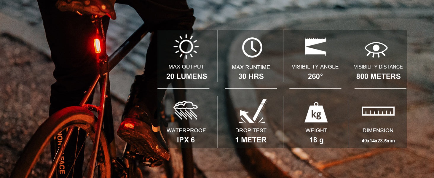 - Compact & Useful Bike Lights -- Weighing only 18g, convenient for go-anywhere use. 4 modes let you stay safe in any riding conditions, easy to operate. SEEMEE20 V2.0 rear bike light is perfect for casual cyclists and even kid's bikes.