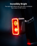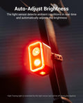 - Built-in motion sensor, automatically turns on when braking (can be turned on/off manually).Ambient light sensor automatically adjusts brightness to the environment.
