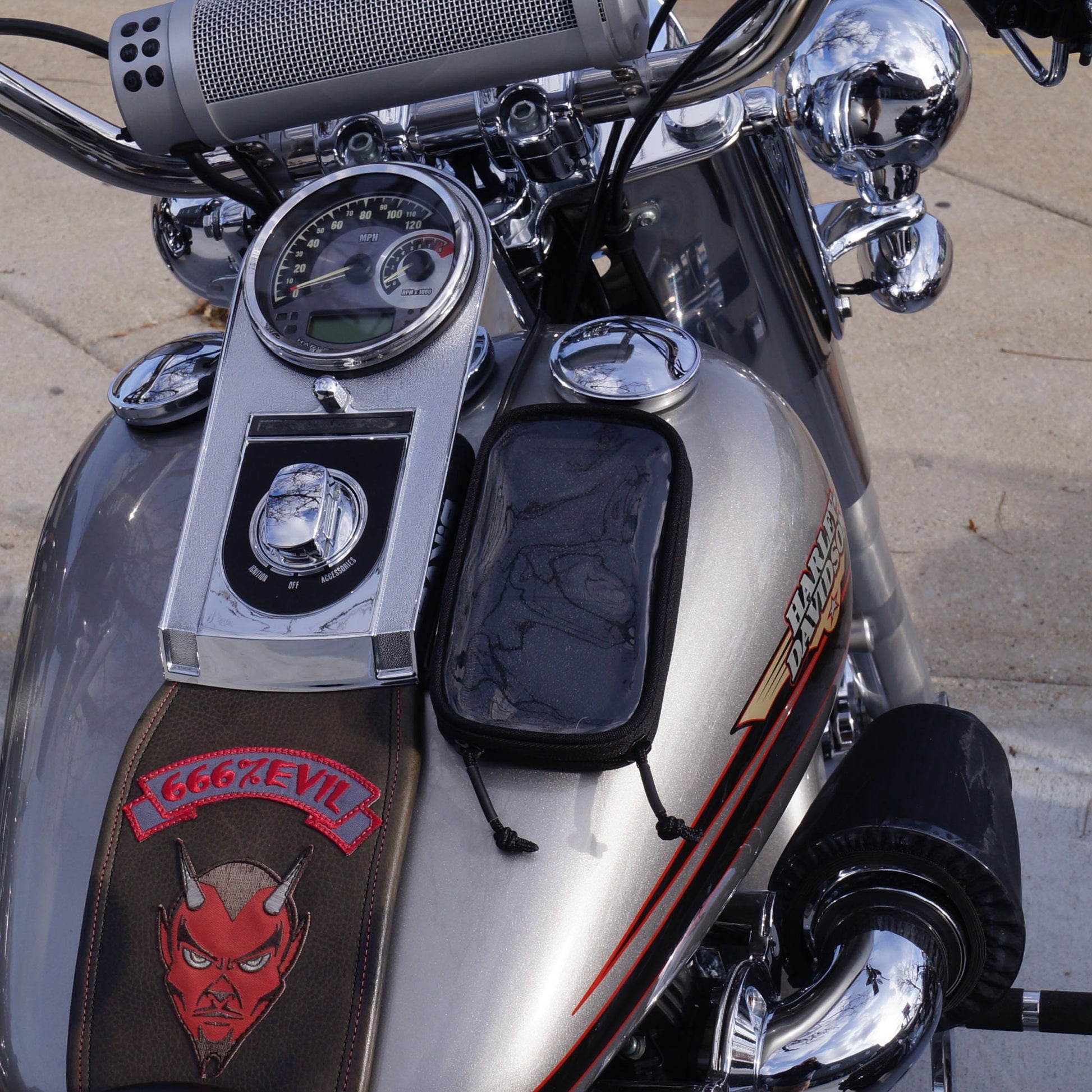 This universal phone holder secures to all different types of surfaces such as the steel of a motorcycle gas tank. It uses 6 high strength rare earth magnets with anti-slip material on the back. The weatherproof case that is see-through, hear through and touch friendly. Internal sleeve spacer with pocket for cash, credit card and ID (doubles as a wallet).
