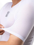 This men's white short-sleeve cycling base layer is built for serious riders who demand breathability, comfort, and versatility. Crafted from high-quality mesh, it delivers excellent airflow and acts as a moisture-wicking cycling shirt, keeping you cool and dry even on long, intense rides. Its lightweight construction and close fit reduce friction and provide subtle muscle support, enhancing your overall riding experience. Whether worn alone in warm weather or layered under your kit, this cycling undershirt for men offers a clean, streamlined look with pro-level functionality.
