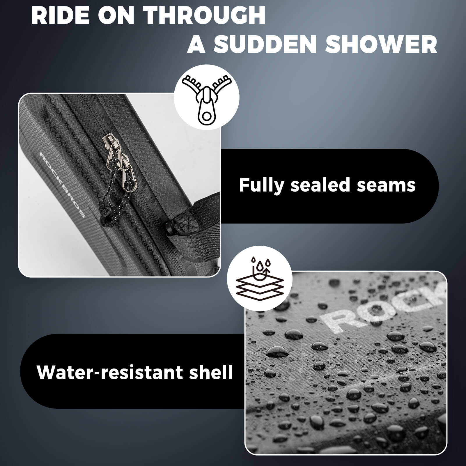 The laminated, water-repellent zipper helps prevent rain entry, providing added protection in light showers—ideal for those seeking a water-resistant motorcycle side bag for mixed weather conditions.