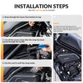 This hard shell motorcycle frame bag uses a carbon-texture exterior that keeps its shape and resists deformation. The sun-ray patterned material offers strong toughness, helping protect your gear from small impacts during daily riding. -