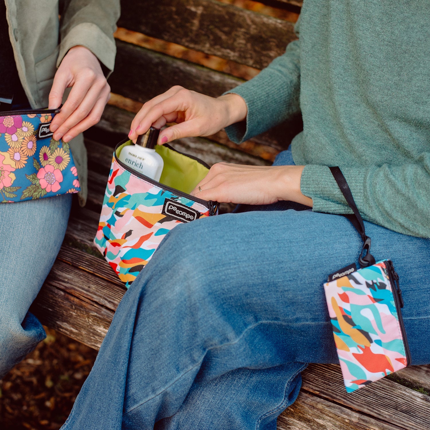 - Medium: W 7" x H 5" - Great for makeup, toiletries, bike tools, small tech (AirPods, phone charger).