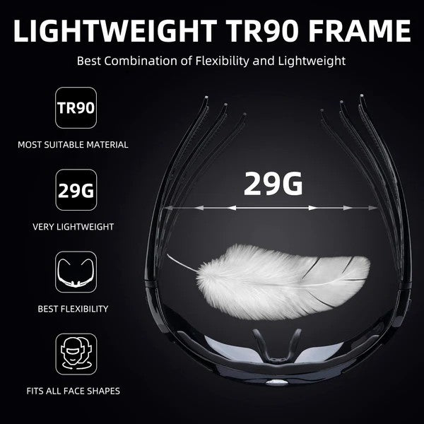 Weighing only 29g per pair, these cycling sunglasses feel light on your face, reducing pressure on your nose and temples for long-lasting comfort. -