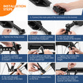 Both the main beam and support rods are equipped with quick-release mechanisms, allowing fast installation and removal without drilling. The triangular support system enhances stability, prevents swaying, and offers strong pressure resistance during rides. -