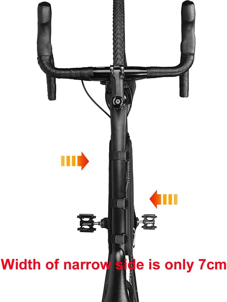 - 【Streamlined Design】The top tube bike bag fits better with triangle area of bike, which makes the bike bag be integrated with the bike. There is no restriction when riding. The Width of narrow side is only 7cm. So the bag can better hidden in the triangle area, and will not hit the leg when riding.