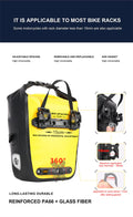 - Quick release system, easy to be fixed on rear rack. Tool free installation with hook and 360° rotary buckle.