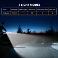 Choose from five brightness levels (1500, 600, 400, 200 lumens, and flashing) along with a smart auto mode. The battery level indicator shows four stages: