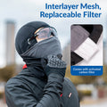 Features a double-layer design at the mouth and nose with a mesh inner layer and a built-in filter pocket. Includes 2 PM2.5 filters for extra protection. -