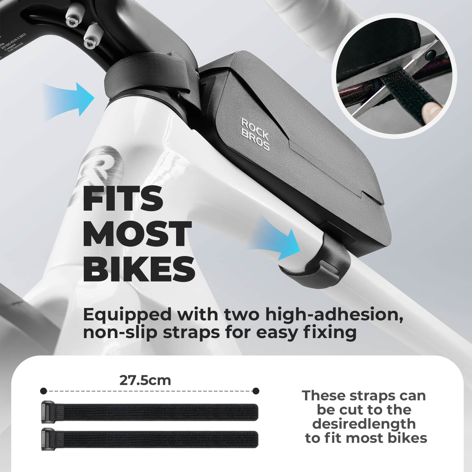 - Secure & Adjustable Installation: Equipped with non-slip hook-and-loop straps for bikes, this easy install bike bag stays firmly in place even on rough terrain. Straps can be trimmed to the ideal length for a precise fit on various bike top tube sizes, making it perfect for both urban commuting and bikepacking adventures.