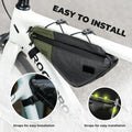 The ROCKBROS Triangle Bike Frame Bag blends eco-friendly design with practical cycling needs. Made from durable, lightweight, and water-resistant Disen Paper, this triangle bag fits road and mountain bikes with a streamlined, low-drag profile. Easy to install with secure Velcro straps, it stays stable on rough rides while multiple compartments keep essentials organized and accessible. A versatile, breathable cycling bag that combines durability, style, and functionality for daily commuting or long-distance rides.