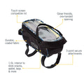 Keep your phone in sight and your snacks within reach with the robust Tussey Bicycle Phone Bag. Adjustable attachment straps ensure a secure fit and it practically molds itself to your frame with its soft shell and silicone grip. With a sleek one-handed open feature and touchscreen compatible lid, juggling gadgets on the go will become a thing of the past with this frame bag.