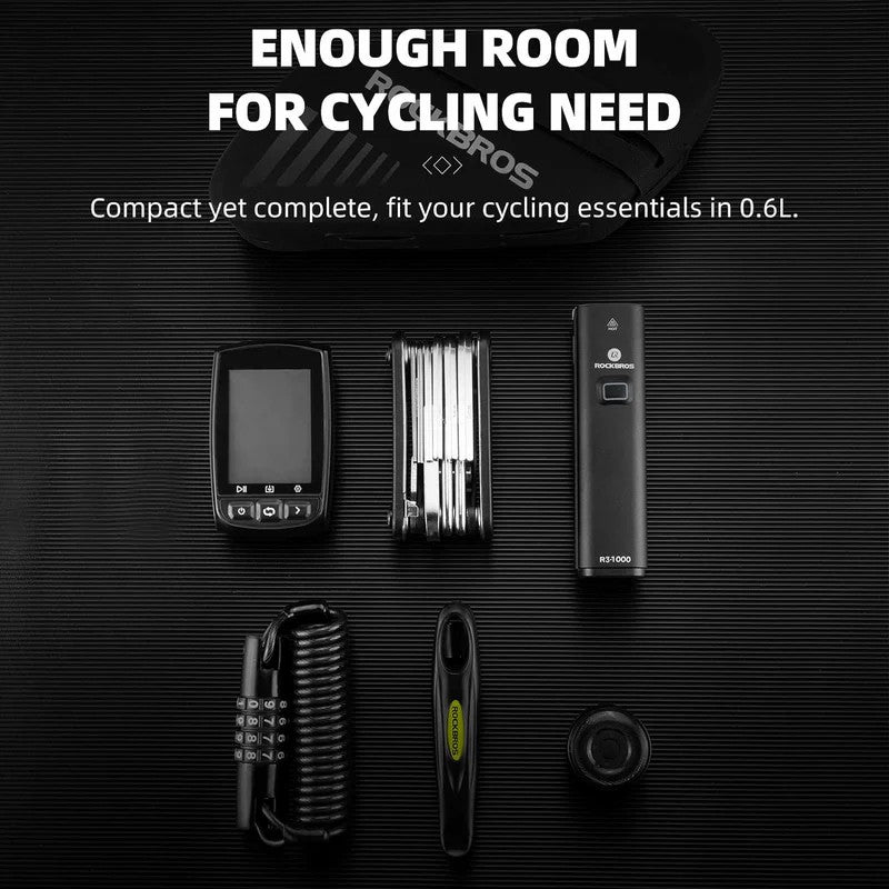 This 0.6L waterproof bike saddle bag from ROCKBROS offers compact storage for essential tools and accessories. Its durable, water-resistant material protects your belongings from rain and splashes, ensuring reliability on every ride. Designed for easy installation under your saddle, it provides secure storage without compromising aerodynamics or comfort. Ideal for mountain biking and road cycling, this lightweight bag keeps your gear organized and accessible on the go.
